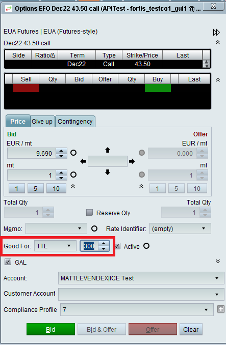 Users can submit a ‘GTDateTime’ order by selecting this value under the ‘Good For’ drop-down on order entry. Time can be specified in hh/mm in local time zone in addition to a date so as to indicate when an order should expire (Time can be within the same day/ session or a future session). If no time is specified then the order will expire at the end of the session on the specified date.